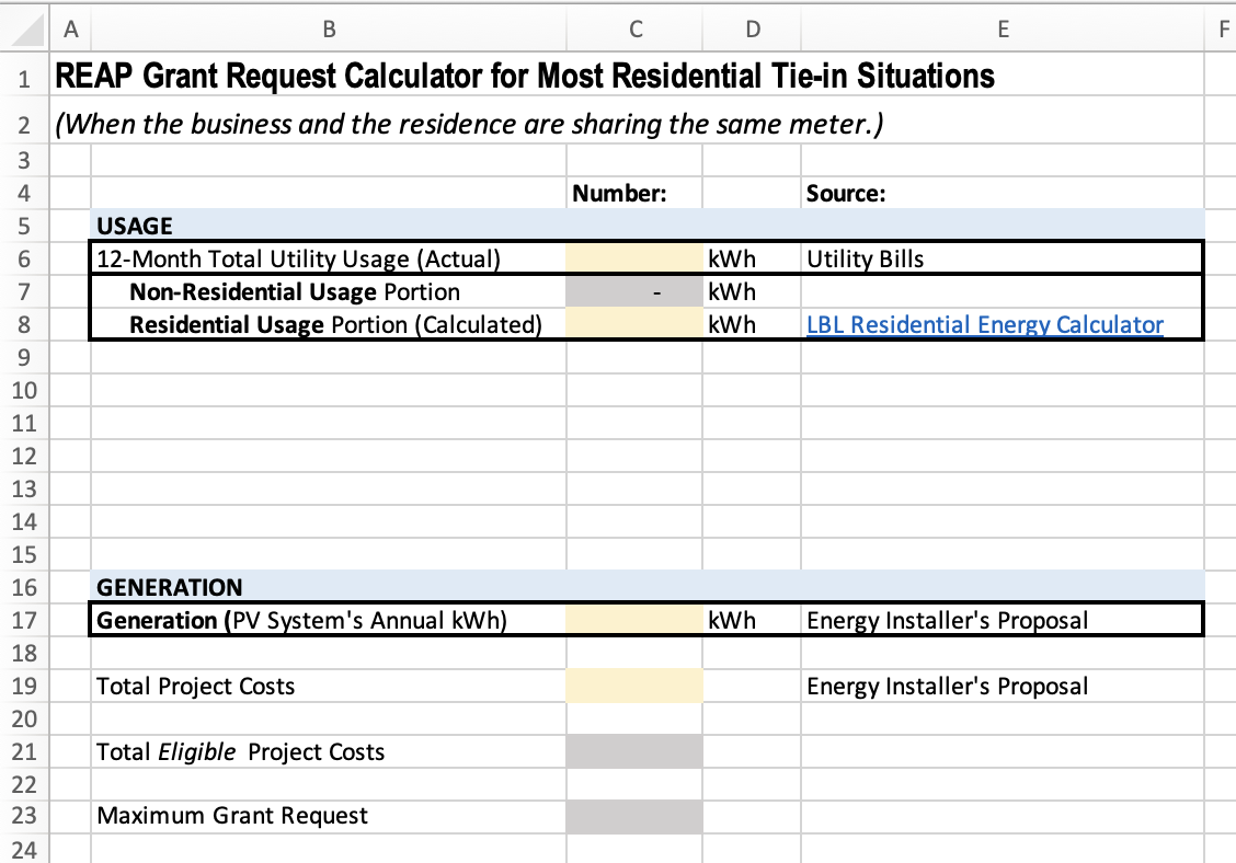 USDA-REAP projects that share a single meter with a residence must prove their business usage exceeds residential usage, and then subtract out the residential portion from eligible project costs.